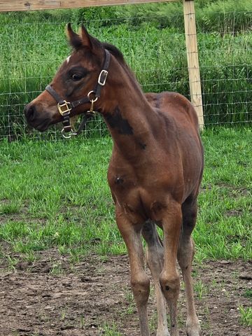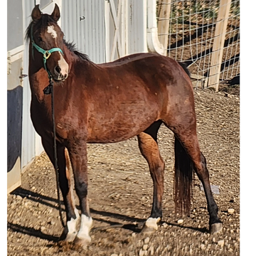 Purebred bay filly - and she has LEGS! She's a looker for sure, and one that makes you look twice, and look twice more. She is friendly and kind first and foremost, but she is also correct, smart, versatile, and athletic. She is going to make someone a fantastic partner in life. Sired by WL Khrezzent Moon, she brings Khemosabi blood to the table along with many other classic lines. Dam is Corallina - a remarkable mare in her own right, coming from proven genetics. Expected mature height - 1